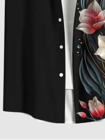 Chemise 3D Fleur et Lumière Imprimées de Grande Taille avec Poche Frontale pour Homme - Noir - Noir