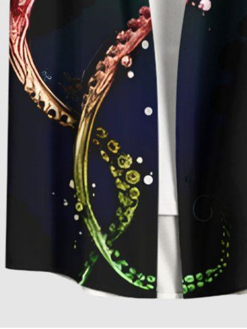Chemise 3D Pieuvre Colorée Imprimée de Grande Taille avec Poche Cachée pour Homme - Noir - Noir