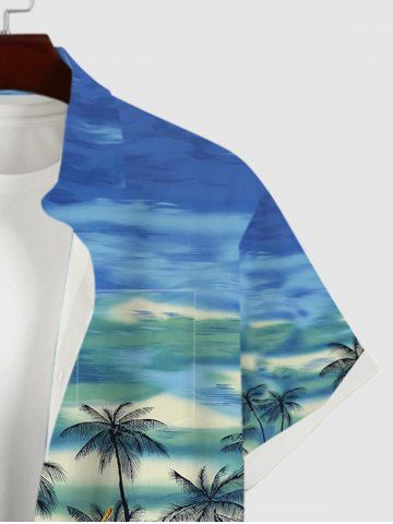 Chemise à Boutons avec Poche à Imprimé Cocotiers et Mer Grande-Taille pour Hommes - Bleu - Bleu