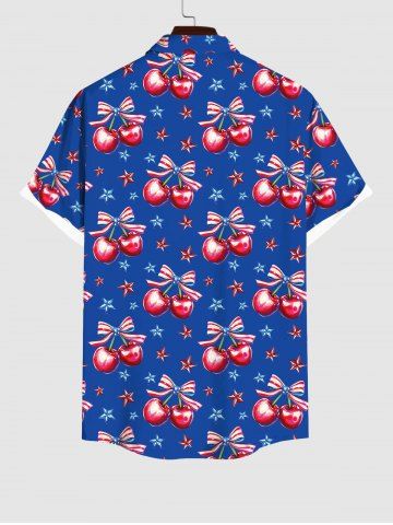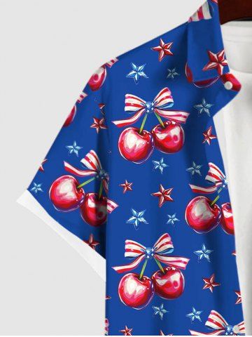Chemise à Manches Courts> Chemise à Boutons avec Poche et à Imprimé Cerises Etoiles et Drapeau Américain Grande-Taille pour Hommes