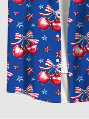 Chemise à Manches Courts> Chemise à Boutons avec Poche et à Imprimé Cerises Etoiles et Drapeau Américain Grande-Taille pour Hommes