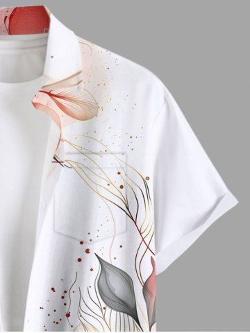 Chemise à Manches Courts> Chemise à Boutons avec Poche et à Imprimé Feuilles et Fleurs à L'Aquarelle Grande-Taille pour Hommes