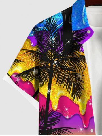 Chemise à Boutons et à Paillettes Brillantes avec Imprimé Cocotiers et Aurore Boréale pour Hommes - Multi-a - 2xl