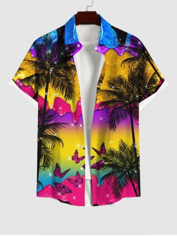 Chemise à Manches Courts> Chemise à Boutons et à Paillettes Brillantes avec Imprimé Cocotiers et Aurore Boréale pour Hommes