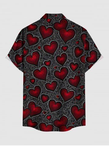 Chemise à Manches Courts> Chemise à boutons et poches pour homme, grande taille, imprimé cœurs et roses, idéale pour la Saint-Valentin.
