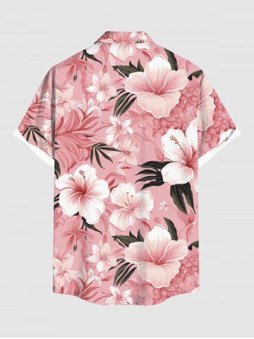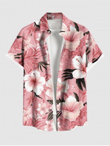 Chemise à boutons et poches pour homme, grande taille, imprimé floral tropical (feuilles d'hibiscus), style hawaïen, pour homme. - Rose Clair - Rose Léger
