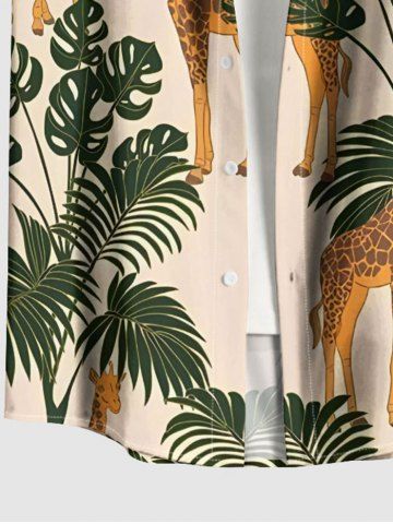 Chemise à boutons grande taille pour homme, imprimé girafe et feuilles tropicales, style hawaïen. - Café Lumière - L