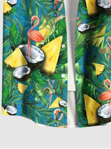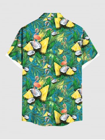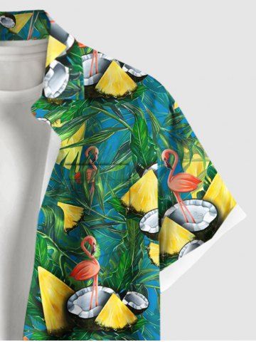Chemise à boutons grande taille pour homme, imprimé hawaïen feuilles tropicales, noix de coco, ananas et flamants roses, style hawaïen - Vert - Vert