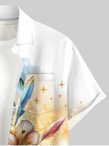 Chemise à Manches Courts> Chemise à boutons grande taille pour homme, imprimé hawaïen, feuilles tropicales pailletées, cocotiers et fleurs d'hibiscus, motif floral et fleurs de mer, avec motif cocotier et paillettes.