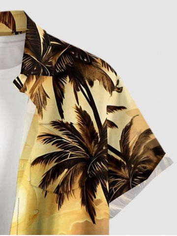 Chemise à boutons pour homme, grande taille, imprimé cocotier, voilier, mer et soleil, style hawaïen. - Pale Goose Yellow - 6xl