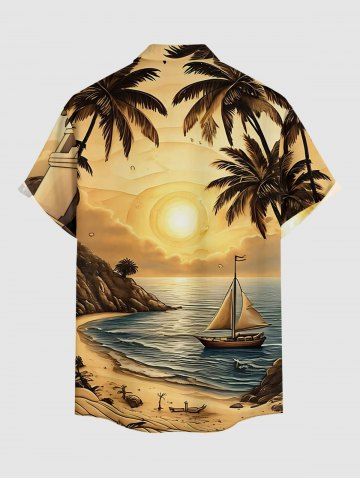 Chemise à Manches Courts> Chemise à boutons pour homme, grande taille, imprimé cocotier, voilier, mer et soleil, style hawaïen.