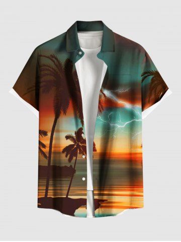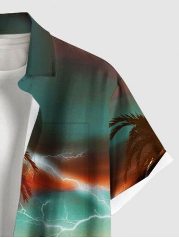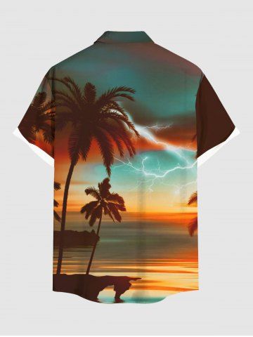 Chemise à Manches Courts> Chemise à boutons pour homme, grande taille, imprimé hawaïen « Coconut Tree Lightning Ombre Dusk » (Coconut Tree Lightning Ombre Dusk