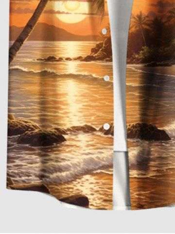 Chemise à boutons pour homme, grande taille, imprimé hawaïen, cocotier et mer ombrée, style Hawaï. - Brun - Brun