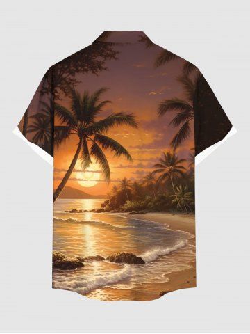 Chemise à boutons pour homme, grande taille, imprimé hawaïen, cocotier et mer ombrée, style Hawaï. - Brun - Brun