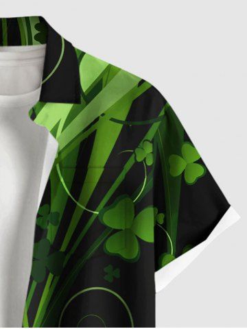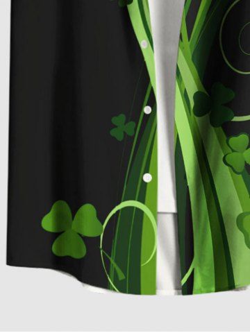 Chemise à boutons pour homme, grande taille, imprimé trèfle et feuilles, style hawaïen, pour la Saint-Patrick. - Noir - Noir