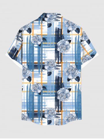 Chemise à carreaux à motifs floraux et colorblock, style hawaïen, grande taille, pour homme - Bleu - Bleu