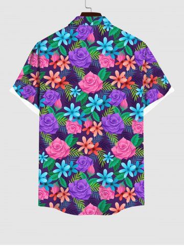 Chemise à Col Rabattu et à Imprimé Feuilles et Fleurs Colorées Grande-Taille pour Hommes - Multi-a - M