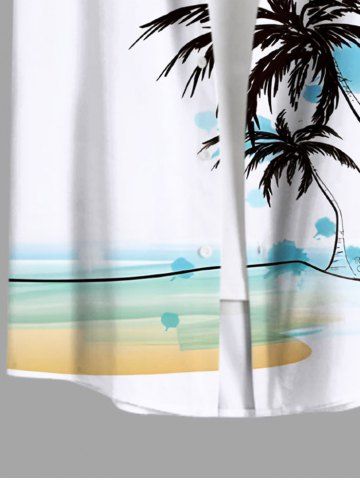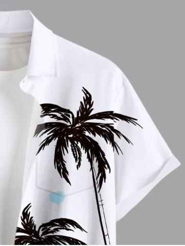 Chemise à Imprimé Cocotiers à L'Aquarelle avec Poches et Boutons Grande-Taille pour Hommes - Blanc - Blanc