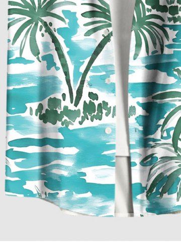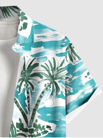 Chemise à Imprimé Cocotiers et Vagues Marines avec Boutons et Poche Grande-Taille pour Hommes - Vert - Vert