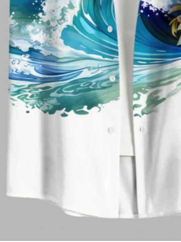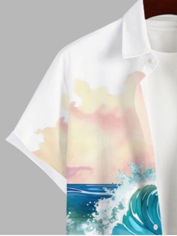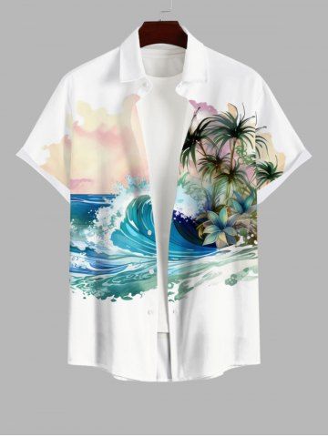 Chemise à Imprimé Cocotiers Vagues et Ciel Étoilé en Dégradé de Couleurs avec Boutons Grande-Taille pour Hommes - Blanc - Blanc