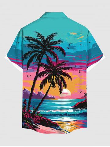 Chemise à Imprimé D'ombre Coucher du Soleil Plage et Nuages en Blocs de Couleurs Grande Taille pour Hommes - Multi-a - M