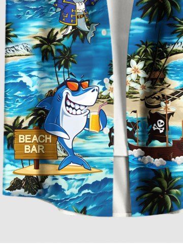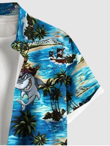 Chemise à Imprimé Dauphins et Vagues Marines avec Boutons et Poche Grande-Taille pour Hommes - Bleu - Bleu