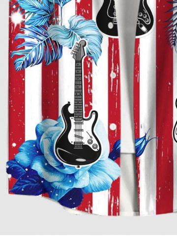 Chemise à Imprimé Drapeau Américain Crânien Grande Taille avec Poche et Boutons pour Homme - Multi-a - M