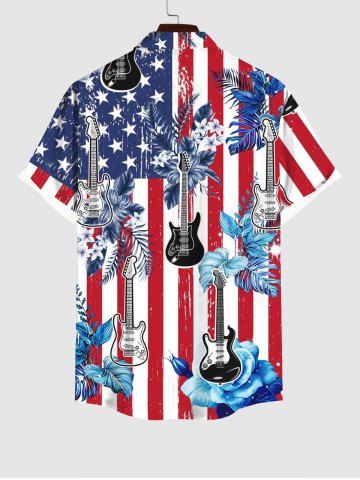 Chemise à Imprimé Drapeau Américain Crânien Grande Taille avec Poche et Boutons pour Homme - Multi-a - 4xl