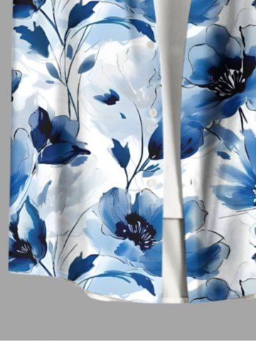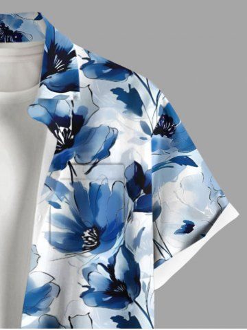 Chemise à Imprimé Fleurs à L'Aquarelle avec Boutons et Poche Grande-Taille pour Hommes - Bleu - Bleu
