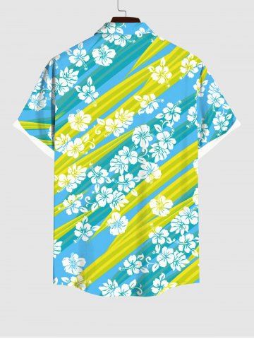 Chemise à Manches Courts> Chemise à Imprimé Graffiti Floral et Rayures avec Poches et Boutons Grande-Taille pour Hommes
