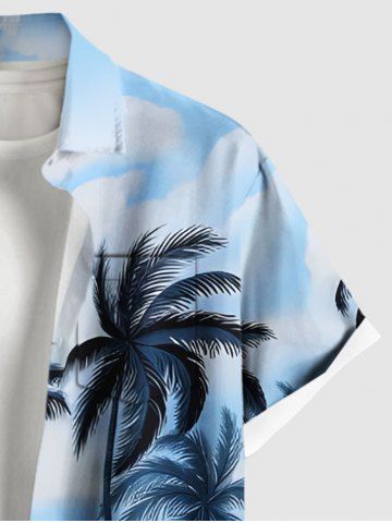 Chemise à Imprimé Paysage Marin avec Poche et Cocotiers Grande-Taille pour Hommes - Bleu - Bleu