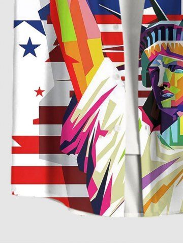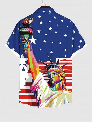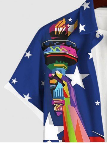 Chemise à Imprimé Statue de la Liberté et Drapeau Américain avec Poche Grande-Taille pour Hommes - Bleu - Bleu