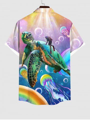 Chemise à Imprimé Tortues Marines et Arc-en-Ciel avec Poches Grande-Taille pour Hommes - Multi-a - Xl