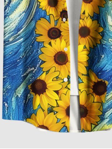 Chemise à Imprimé Tournesols Peintes à L'Eau avec Boutons Grande-Taille pour Hommes - Bleu - Bleu