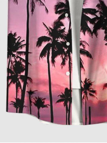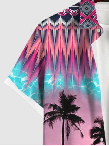 Chemise à Manches Longues et à Col Rabattu avec Imprimé Cocotiers et Poche Style Ethnique Grande-Taille pour Hommes - Rose Clair - Rose Léger