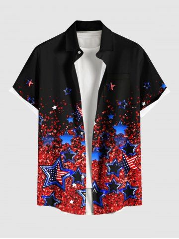 Chemise à Manches Courts> Chemise à paillettes grande taille avec imprimé drapeau américain patriotique et poche boutonnée pour homme