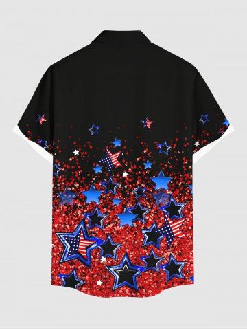 Chemise à paillettes grande taille avec imprimé drapeau américain patriotique et poche boutonnée pour homme - Noir - Noir