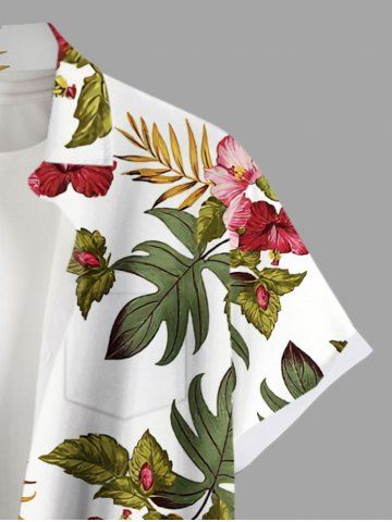 Chemise à poches boutonnées à imprimé floral tropical et feuilles d'hibiscus, grande taille, pour hommes - Blanc - Blanc