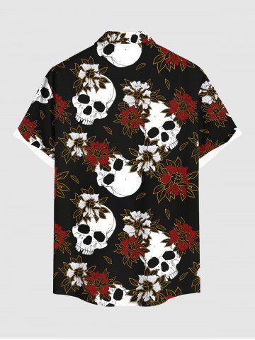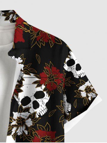 Chemise à Manches Courts> Chemise à poches boutonnées grande taille pour homme, imprimé fleurs et têtes de mort