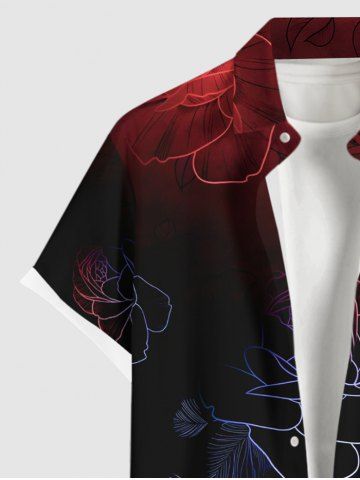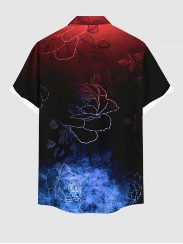 Chemise à Manches Courts> Chemise à poches boutonnées grande taille pour homme, imprimé floral hawaïen dégradé, style peinture à l'encre
