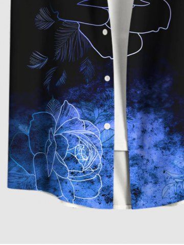 Chemise à poches boutonnées grande taille pour homme, imprimé floral hawaïen dégradé, style peinture à l'encre - Noir - Noir