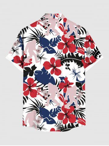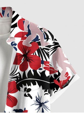Chemise à Manches Courts> Chemise à poches boutonnées grande taille pour homme, imprimé gorille, fleurs d'hibiscus et feuilles tropicales, style hawaïen