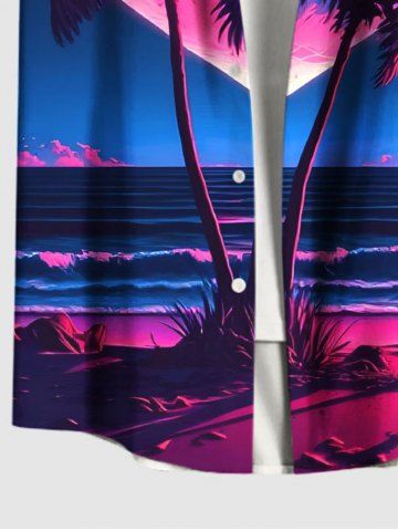 Chemise à Manches Courts> Chemise à poches boutonnées grande taille pour homme, imprimé ombré de cœurs et de cocotiers, style hawaïen, Saint-Valentin. Motif : cocotiers et mer. Style : ombré. Motif : cœurs. Style : ombré. Motif : hawaïens. Style : Saint-Valentin. Taille : grande. Pour homme.