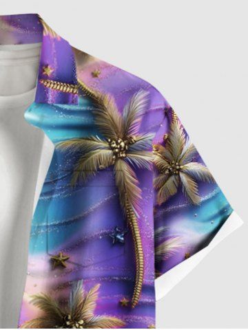 Chemise à poches boutonnées grande taille pour homme, imprimé ombré de cocotiers et d'étoiles de mer, style hawaïen, avec motif marin et cocotiers. - Pourpre - Pourpre