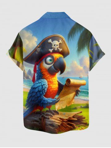Chemise à Manches Courts> Chemise à poches boutonnées grande taille pour homme, imprimé perroquet pirate, croisière hawaïenne