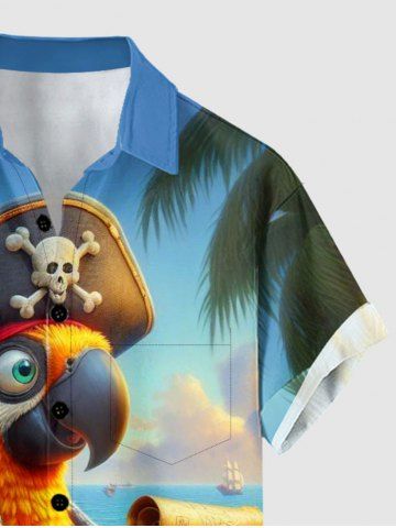 Chemise à poches boutonnées grande taille pour homme, imprimé perroquet pirate, croisière hawaïenne - Bleu Ciel - Bleu Ciel