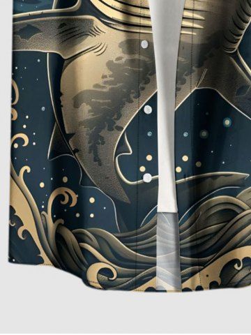Chemise à Manches Courts > Chemise à poches boutonnées grande taille pour homme, imprimé requins, vagues et soleil, créatures marines d'Hawaï