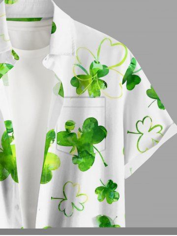 Chemise à Manches Courts> Chemise à poches boutonnées grande taille pour homme, imprimé trèfle, pour la Saint-Patrick