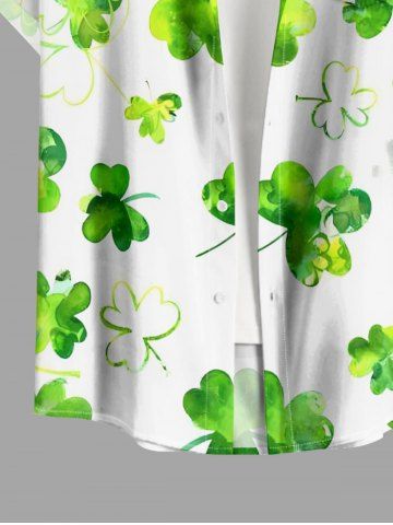 Chemise à Manches Courts> Chemise à poches boutonnées grande taille pour homme, imprimé trèfle, pour la Saint-Patrick