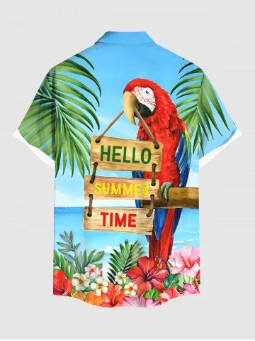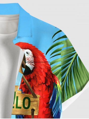 Chemise à poches boutonnées grande taille pour homme, imprimé tropical, fleurs et perroquets, style hawaïen. - Bleu Ciel - Bleu Ciel
